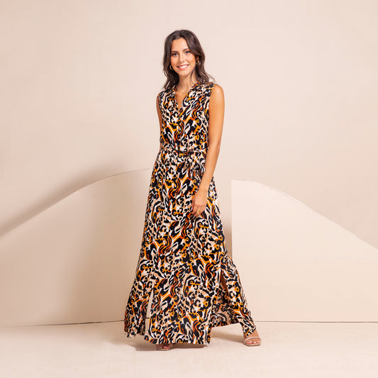 Vestido Barcelona An.print Negro, Tierra y Ocre