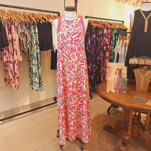Vestido Mariluz largo seda an print rosa