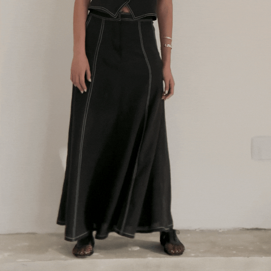 Pollera Nerea negra con pespuntes