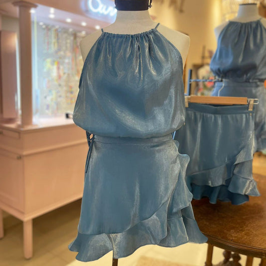 AgotadoPollera Leticia brillito Azul