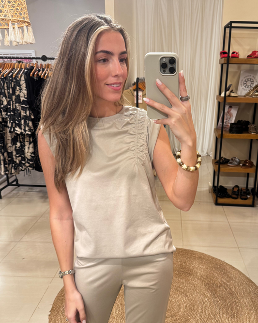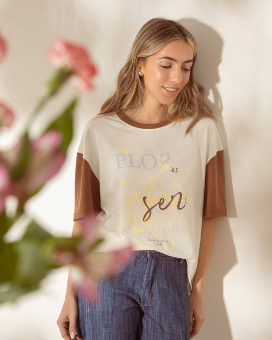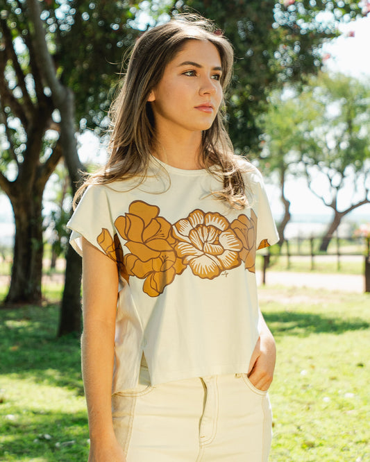-20% OFFRemera Frunce Natural Flores Beige