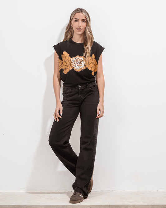 -20% OFFRemera Carlota Negra Flores Ocre