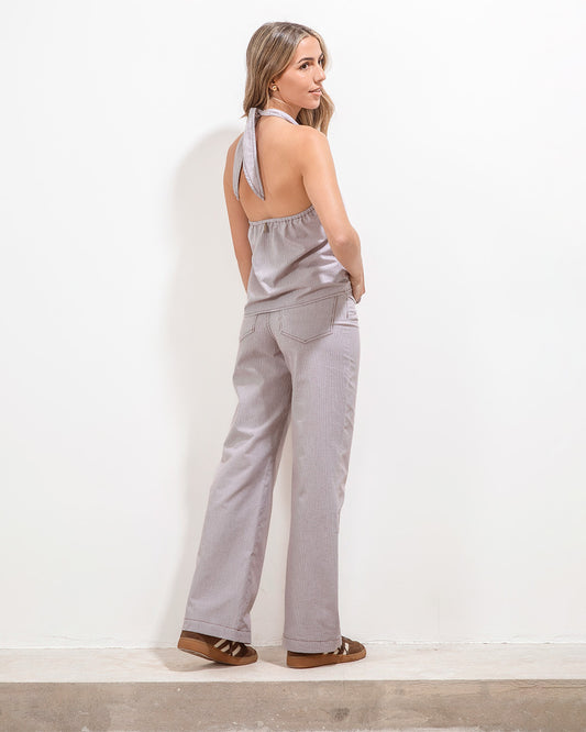 -50% OFFPantalon Oxford Rayas Chocolate