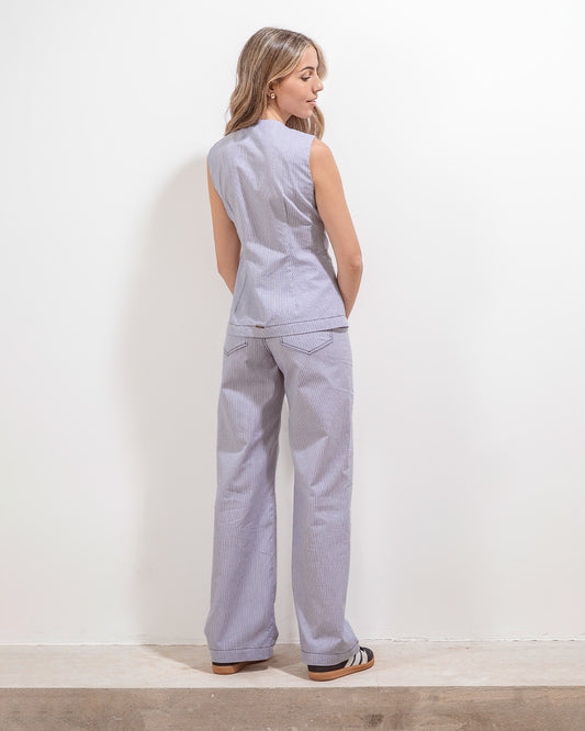 -50% OFFPantalon Oxford Rayas Azul