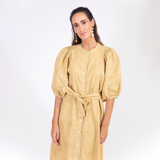 -50% OFFVestido Gema Broderie Ocre