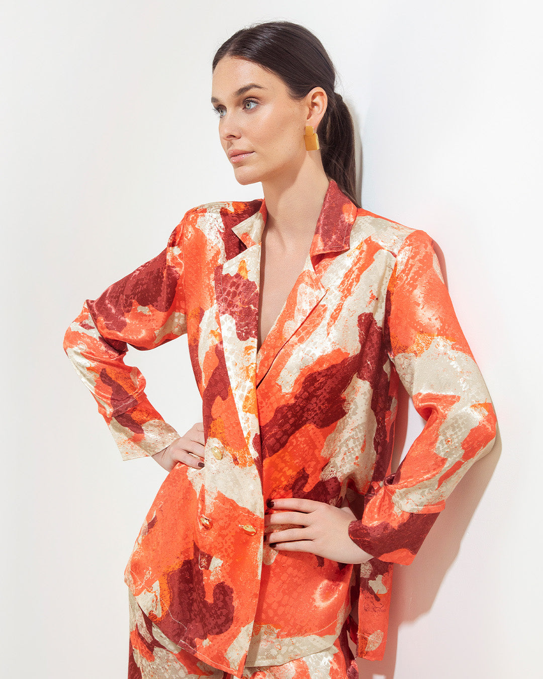 Blazer Gardenia Jacquard Print Bordo
