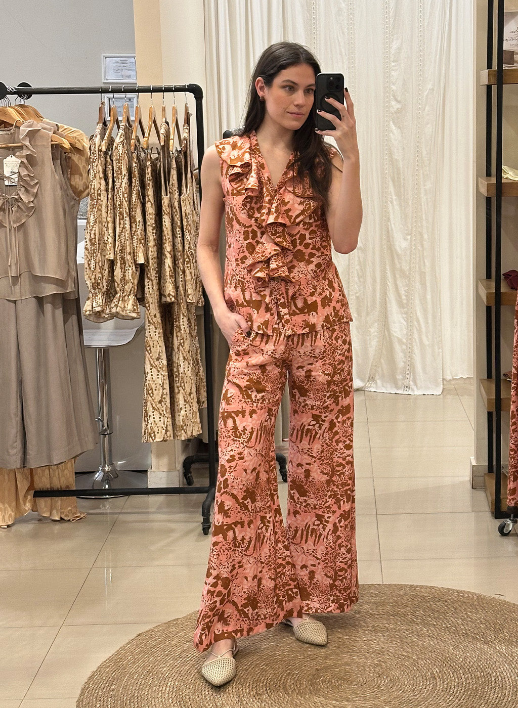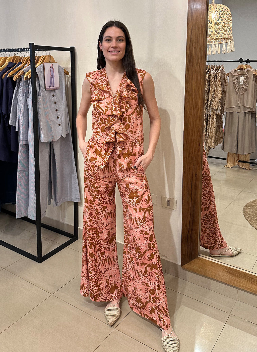 Blusa Bella Lino Print Rosa