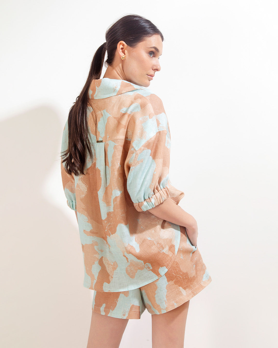 Short Valencia Lino Acuarela Aqua