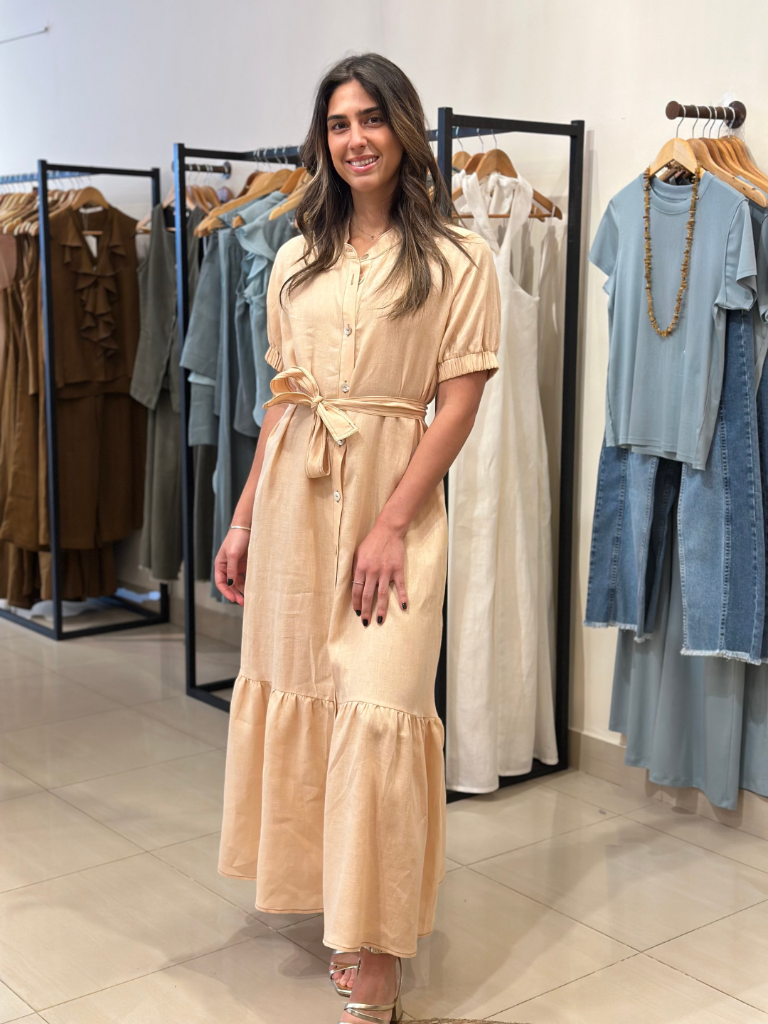 Vestido Mar Lino Beige